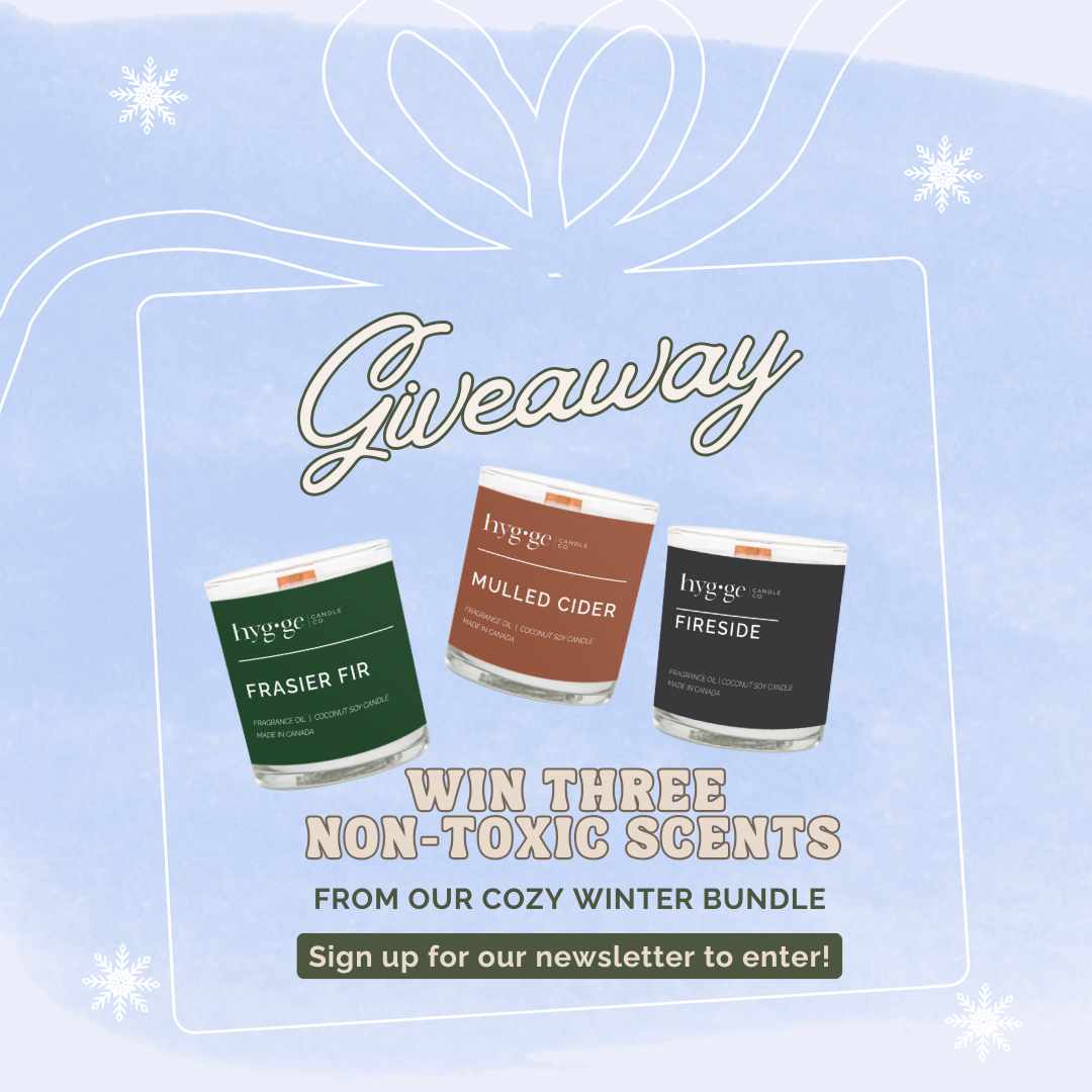 Cozy Winter Candle Giveaway ✨ Sign up for our emails and you’ll be entered to win a cozy winter candle bundle featuring three of our best-selling, non-toxic scents made with pure coconut soy wax.Includes:Fireside — warm & smokyFrasier Fir — fresh & forest-inspiredMulled Cider — sweet & spicedPlus, you’ll get 15% off your first order when you subscribe.Giveaway ends February 9th! Email Address Sign Up Giveaway open to Canadian residents only! Thank you!